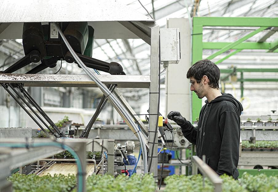 Collaborative delta robot deployed in greenhouses, automating repetitive tasks with fast ROI and seamless integration.