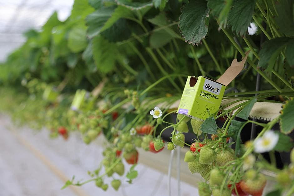 Biobest’s eco-friendly Aphidoletes-System packaging features a built-in sugar strip and hook for quick crop placement. It supports faster population build-up, boosts adult longevity and fecundity, and ensures effective, sustainable aphid control.