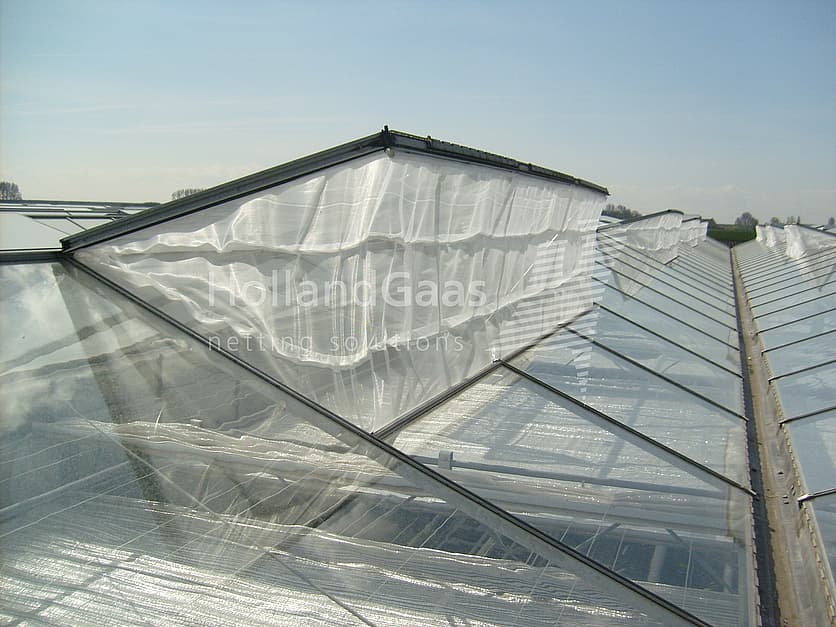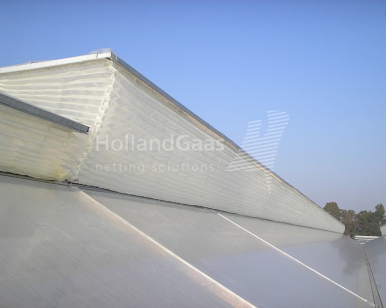 The accordion insect netting system has been developed by Holland Netting itself. Exchanging knowledge with greenhouse suppliers, growers and research centres has led to a system that can be optimally integrated into new greenhouse structures because the profiles are already fitted in the greenhouse roof. But Holland Netting has also thought about existing construction, polytunnels and frameless ventilation windows.