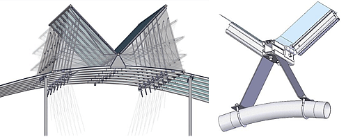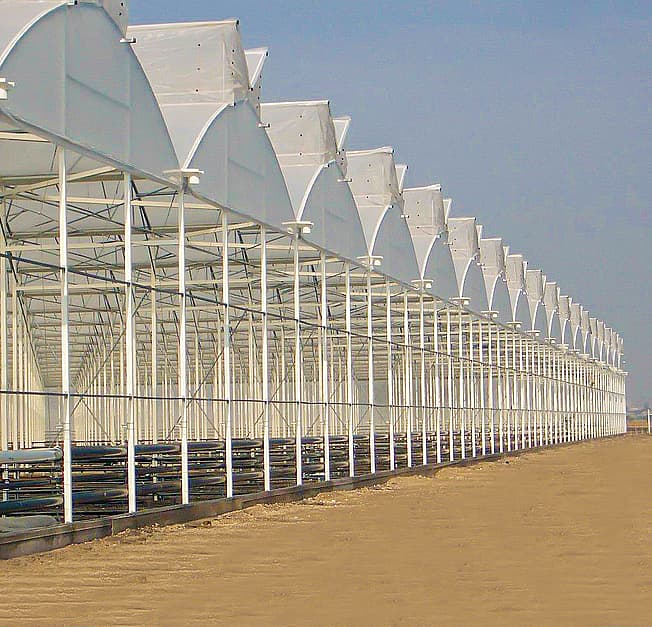 El modelo AEROTWIN EVEREST™ tiene la mayor captación de luminosidad interior, así como la mayor ventilación de su segmento en el mundo hoy en día, factores imprescindibles para un mejor desarrollo del cultivo, y obtener mayor producción, calidad así como precocidad en la cosecha. Las ventanas ALUCLAIR™, es otra de las grandes ventajas que tiene el modelo EVEREST: • Una línea de doble ventana ALUCLAIR™ por nave (100% de aluminio) • Brazo de ventana de 1.80m • Angulo de apertura superior