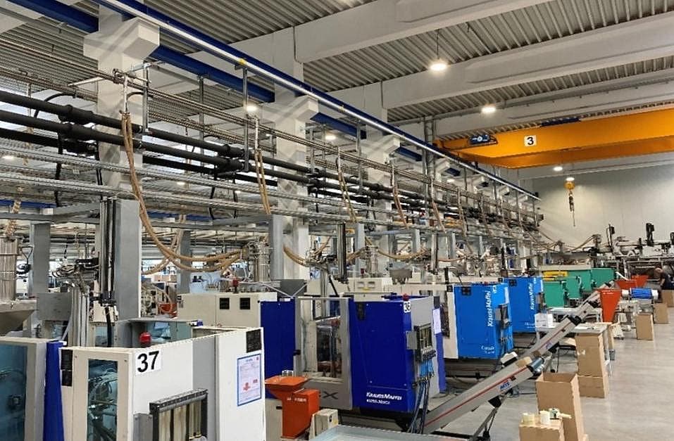Our Injection moulding department has more than 70 injection moulding machines with clamping forces ranging from 200 to 11,000 kN. A wide variety of thermoplastics (i.a. ABS, ASA, PS, PP, PP TV, PP GF, PE, TPE/TPU, POM, PA 6/6.6 with and without GF or GK, PK, and PVC) are moulded in reproducible quality, up to an injection weight of 9 kg. We produce 1-, 2-, or 3-component parts (various colors, materials, and hardnesses) as well as insert moulding (inserting and overmoulding metal components).