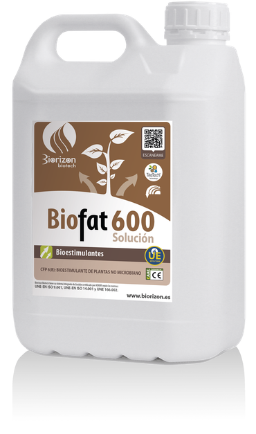BioFat 600 is a liquid biostimulant made from microalgae extracts with 5% nitrogen (N) and 7% calcium (CaO).