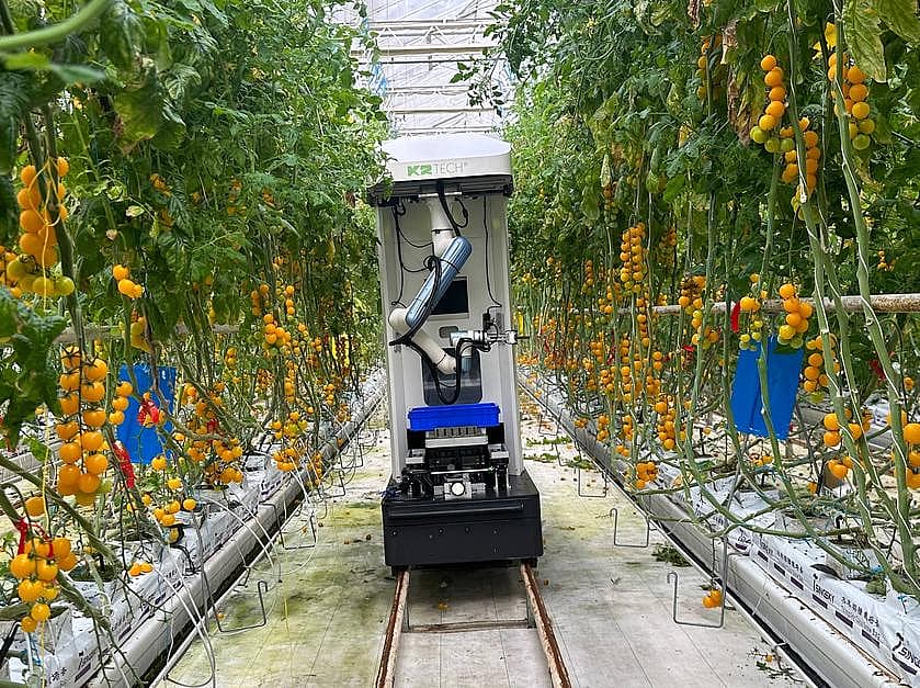 Autonomous harvesting robots for greenhouses.A system that identifies fruit based on ripeness, and then picks and packs it directly into a box.