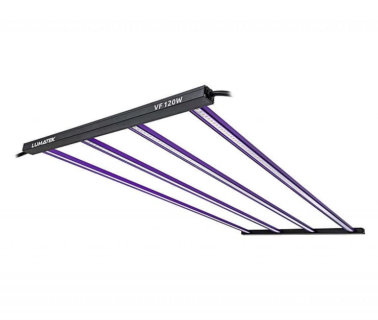These versatile high efficacy fixtures will ensure you reach your goals when used in Vertical Farming applications. From propagation factories and nurseries, climate chambers, warehouse farms, containers, between others, the Lumatek VF range will deliver the adequate light quality spectral and photon flux levels you need. The VF120W comprises of four 30W LED bars with 4000K White and 3000K Warm White diodes, with a total PPF output of 308 µmol/s and a 2.4 µmol/J Efficacy.