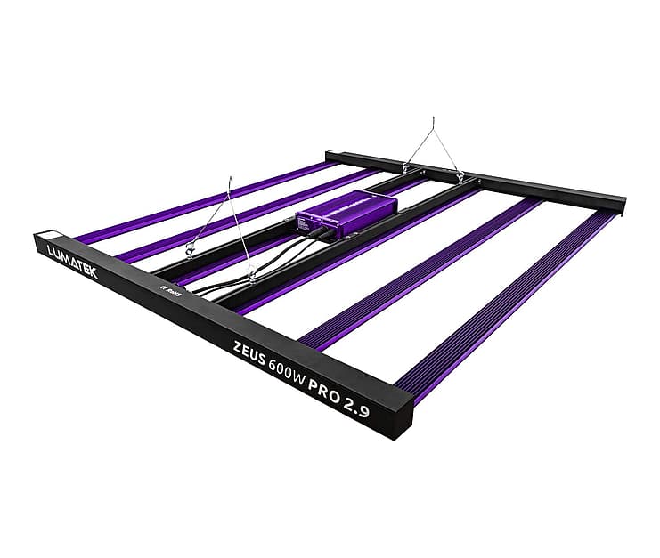 Winner of the Spannabis 2022 'Best Growing Product' Award... The high performance specification Lumatek Zeus Pro 2.9 is a linear multi-light bar fixture producing very high levels of PPF of 1770 µmol/s and a very high efficacy of up to 2.9 µmol/J. The array of the creates a uniform spread of light at short distance to the crop enabling single source grow lighting for multi-layer cultivation systems, single benches in low rooms and grow tents. This fixture will cover 1.4×1.4m - 1.5x1.5m