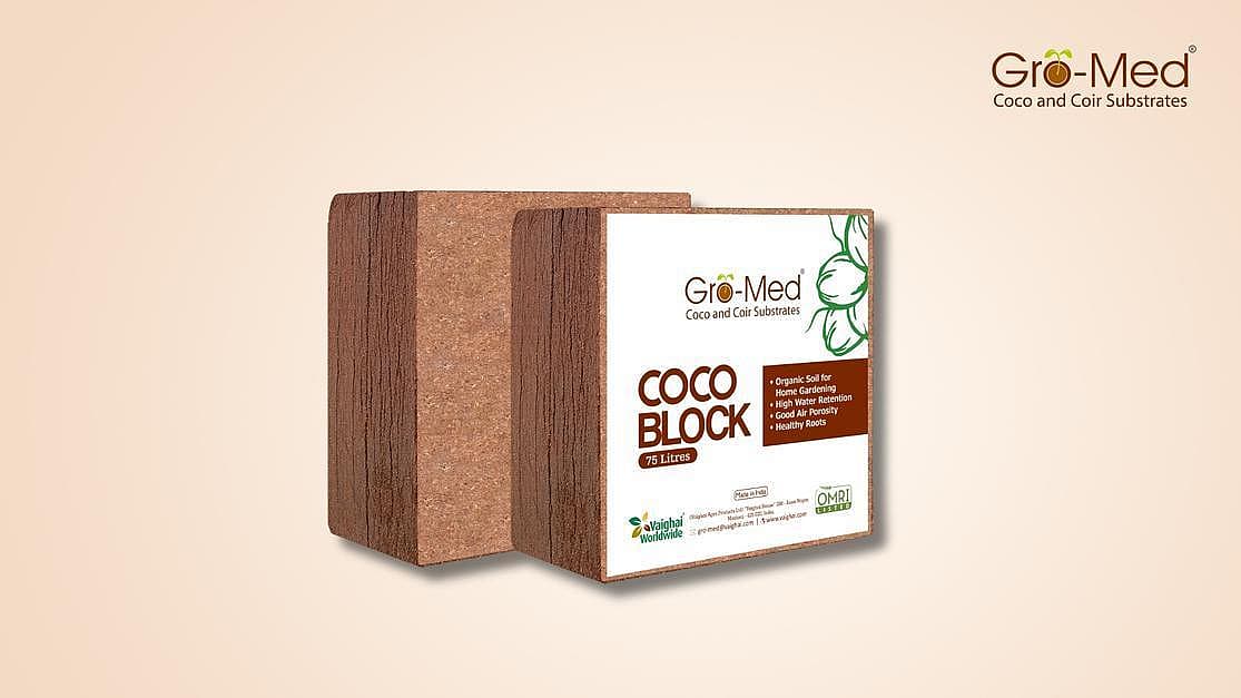 Gro-Med Coconut Coir Block - Expands Upto 75 Litres